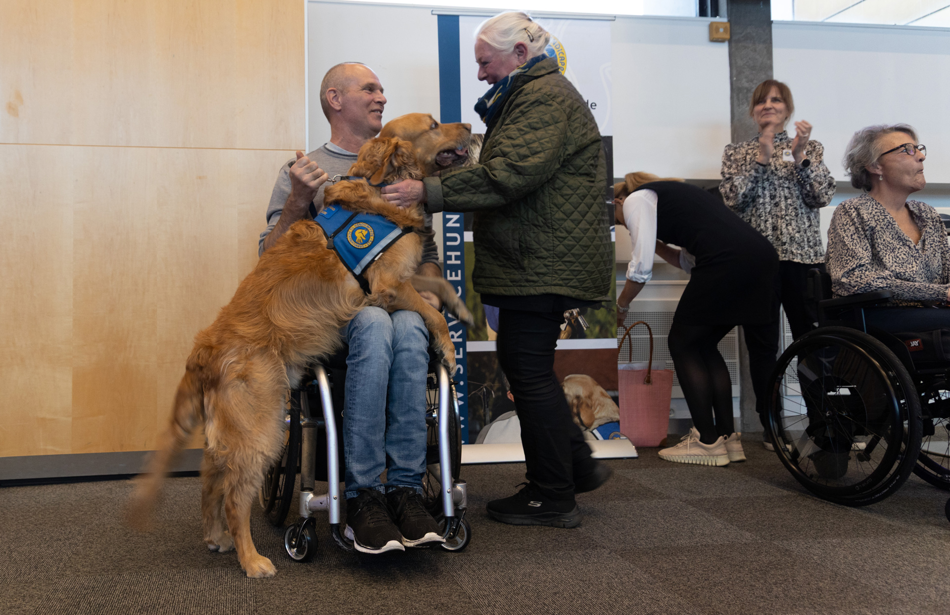 En servicehund bliver ikke bare født til det – den bliver udviklet gennem socialisering, miljøtræning, avanceret special træning af erfarne instruktører. Vi uddanner retrievere til at blive uundværlige servicehunde til mennesker med bevægelseshandicap.